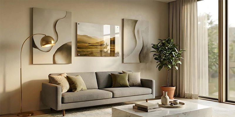 Living rooms need art that feels right. Art for living room walls sets the mood. Canvas adds warmth and comfort. Family photos look good on canvas. Nature prints give calm feelings. Acrylic gives sharp focus and life. Large acrylic prints can be the center of the room. City images look bold on acrylic. Wall size affects art scale. Sofa placement guides art height. Space between pieces matters. Lighting changes color and detail. Both types work when chosen well. Personal taste helps make the right choice. Living room art shows home style and life.Matching Room Decor