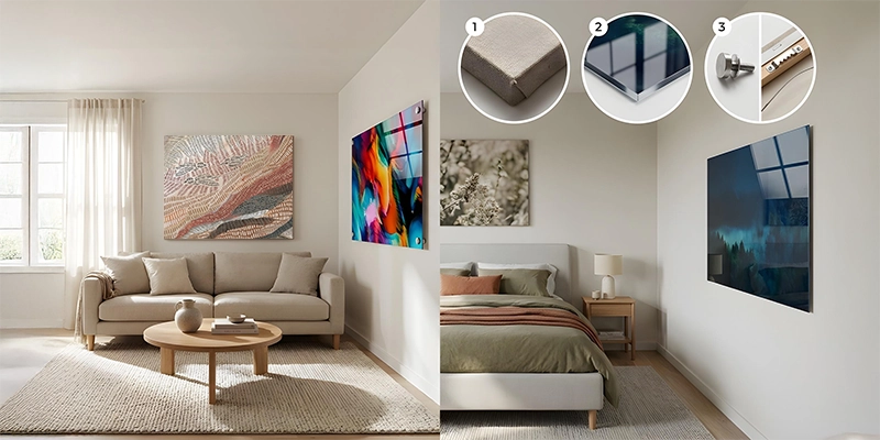 Knowing art pros and cons helps pick the right one. Canvas gives warmth and soft texture. It cuts glare well in bright rooms. It blends with many styles. It feels less strict than acrylic. Texture softens details. Colors are less bold. Canvas may absorb moisture. Bathrooms need care. Cleaning must be gentle. Edges may wear over time. Canvas suits artistic prints best. Paint or abstract styles work well. Canvas is often cheaper than acrylic. It adds comfort and charm. Many homes still use this classic look.Pros and Cons of Acrylic